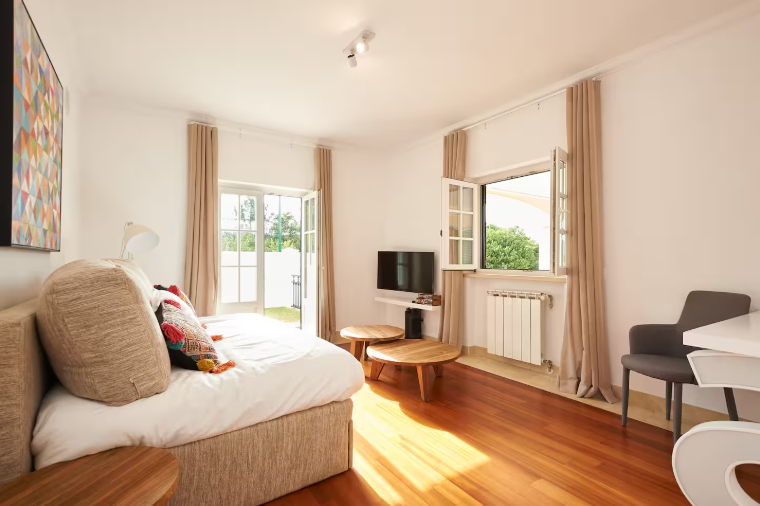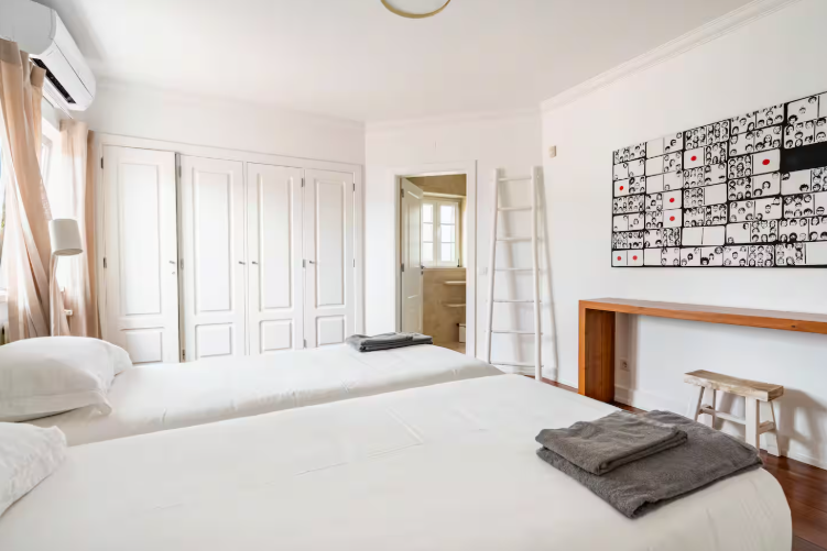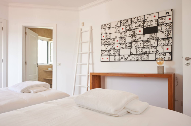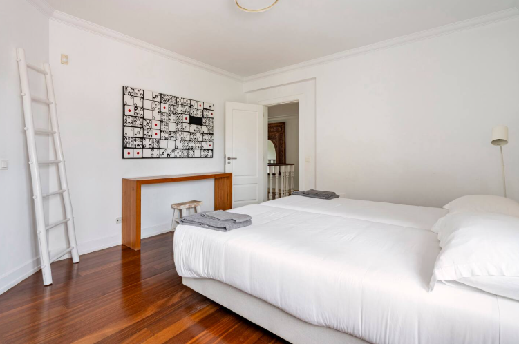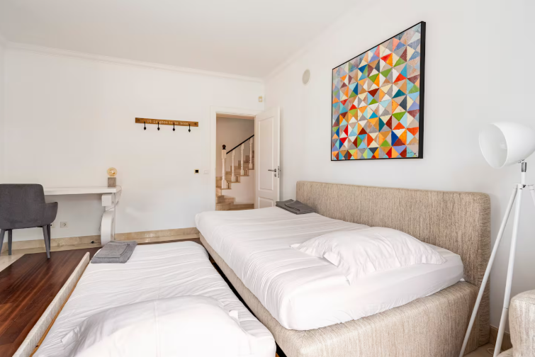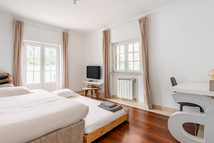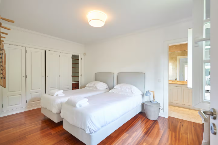 Room #4 – With two separate beds and a half-bathroom next door, this room is bathed by natural light during the entire day, and has access to the outside. perfect for children, it also doubles as a workspace.