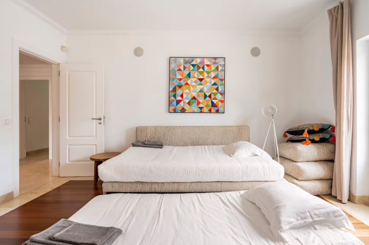 Suite #2 – With two separate beds and a full private bathroom, this suite is bathed by natural light during the entire day. The closet is spacious, and the generous room makes it perfect for two people to use individually.